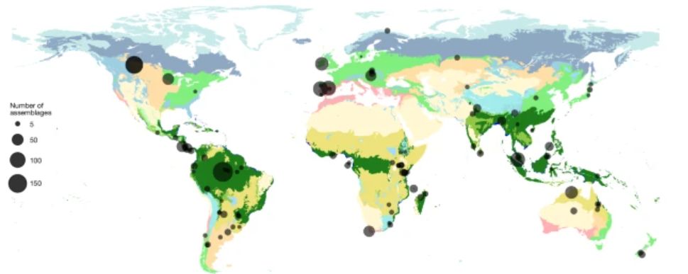 Muestreos e impactos del cambio de uso de la tierra en las aves a nivel mundial | Weeks, Thomas L., et al. (2025) Land-Use Change Undermines the Stability of Avian Functional Diversity  Nature doi: 10.1038/s41586-025-09788-0. CC BY 4.0