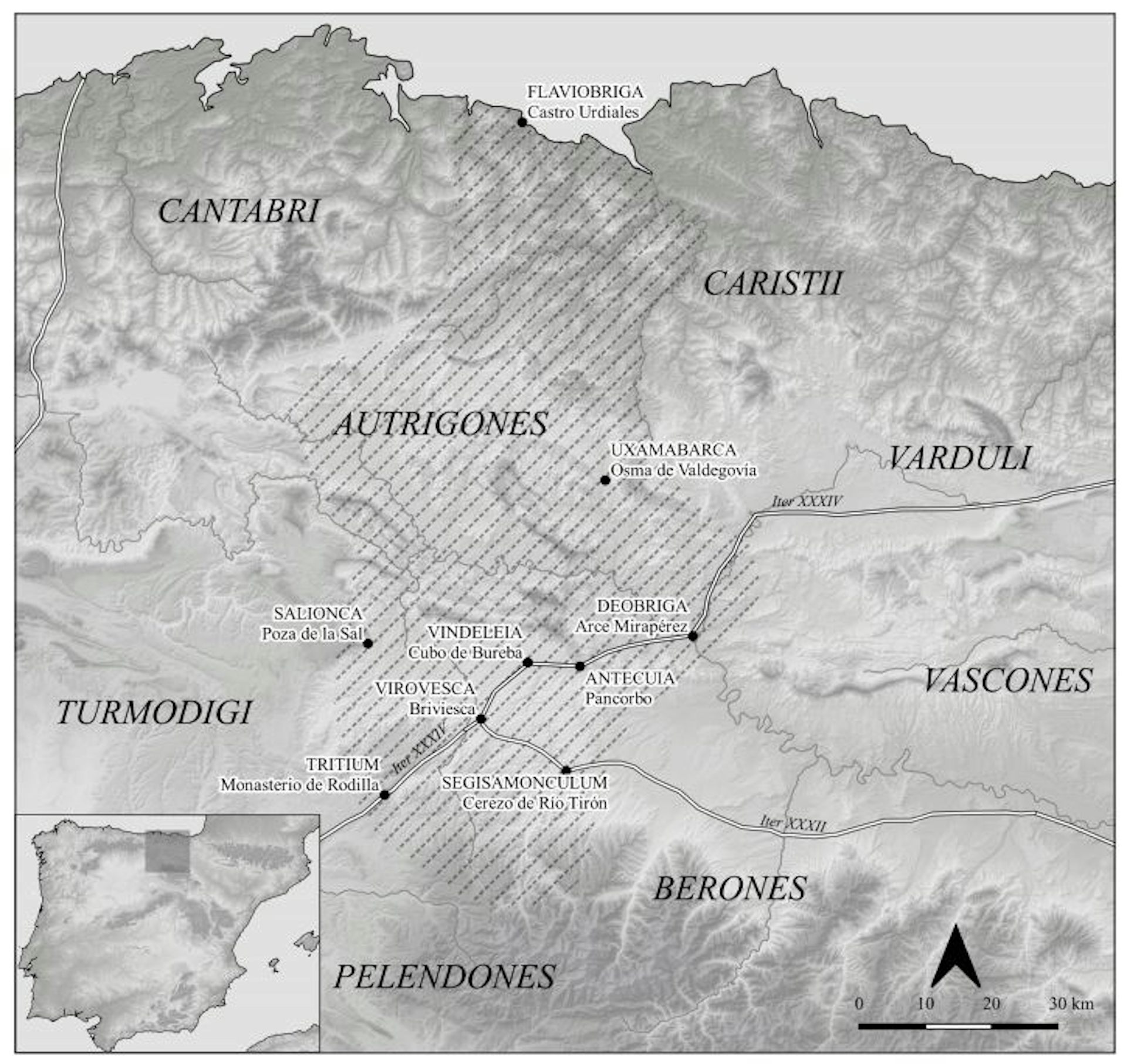 “Al convento jurídico de Clunia los várdulos llevan catorce pueblos de los que solo hay que nombrar a los alabanenses. […] Entre los nueve pueblos de los cántabros solo hay que nombrar a Iuliobriga y entre las diez ciudades de los autrigones a Tricio y Virovesca”.