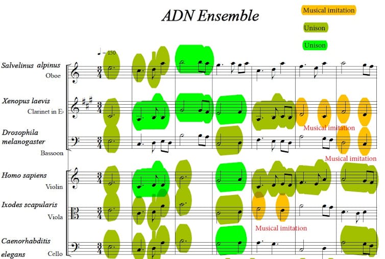 ¡Que suene la música! La trucha alpina al oboe. Una rana al clarinete. El fagot para la mosca del vinagre. La única persona de esta peculiar banda toca el violín, mientras que una garrapata se encarga de la viola. Completa el sexteto de viento y cuerda un Caenorhabditis elegans, un pequeño gusano de un milímetro que hará que suene un imponente chelo.