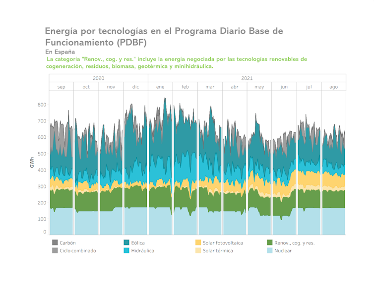 Una de las causas de la subida en el precio de la electricidad es el aumento de la demanda de energía que, durante semanas, ha coincidido con una menor disponibilidad de fuentes renovables, lo que ha hecho necesario recurrir a la producción en centrales de ciclo combinado que producen electricidad a partir del gas.