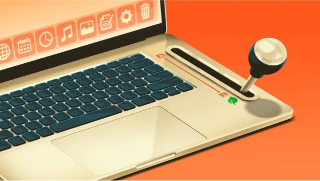 1. irudia: Ordenagailua eta martxa palanka. (Ilustrazioa: Nash Weerasekera / Quanta Magazine).