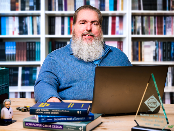 Michael Frank denbora luzez lan egin du ordenagailu alderantzizkagarri praktikoak sortzeko, daturik ezabatzen ez dutenez energia kopuru nabarmena aurreztuko luketelako. Argazkia: Johnny Carroll/Albuquerque Headshot & Portrait