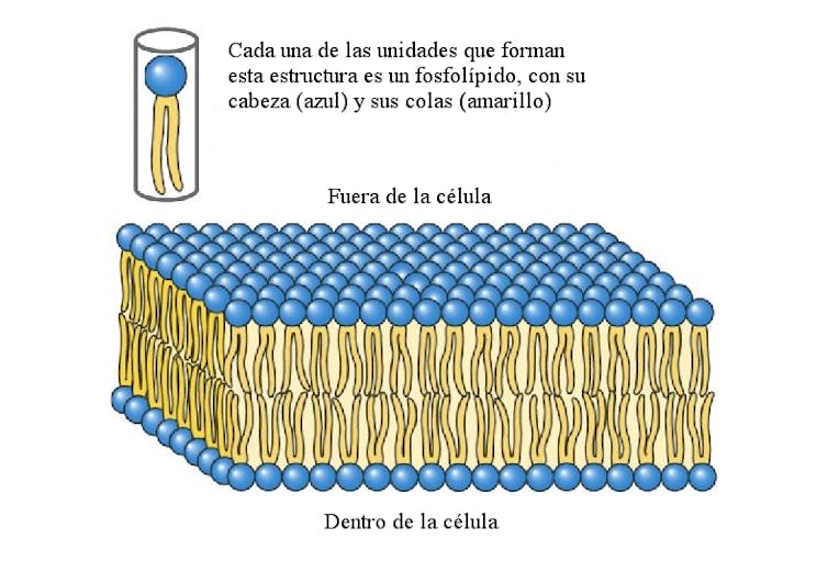 El fenómeno interesante es que las cabezas se alinean y las colas también (como en la imagen). Esto no es ni más ni menos que una membrana, el principio de una célula. Esta membrana es una especie de cercado que delimita la célula. Por tanto, sin etanolamina no habría fosfolípidos y, sin ellos, no habría células y, por tanto, vida.