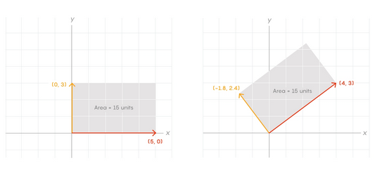 Orain bektorea koordenatuen sistema berriaren norabide bakoitzean duen hedaduraren arabera adierazten duzu, eta, horren ondorioz, emaitza bestelakoa da. Hala ere, bektorea ez da aldatu: luzerak eta norabideak berdin jarraitzen dute, zure koordenatuen sistema edozein dela ere. Gainera, koordenatuen sistema batetik bestera nola aldatu baldin badakizu, automatikoki jakingo duzu nola aldatu beharko litzatekeen zure zenbakien zerrenda.