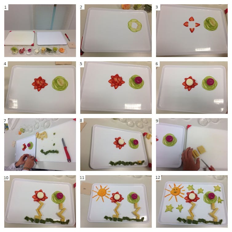 También es importante recalcar la importancia de jugar con los alimentos, tocándolos con las manos e implicando diferentes sentidos. Al final, crear comidas artísticas es una nueva forma de jugar y divertirse en familia.The Conversation
